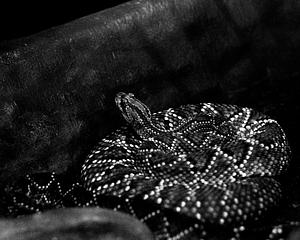 A rattlesnake from a different climate is coiled up and waiting for...something at the Pittsburgh Zoo.